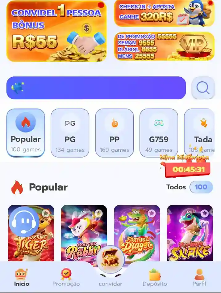 Ao baixar o aplicativo, você entra para um grupo exclusivo de jogadores com acesso a ofertas que não estão disponíveis para quem usa o computador. Essas promoções foram criadas para aumentar seu saldo e manter a emoção em alta, como a Recompensa Semanal que te dá 50% de compensação por semana, e os Prêmios Diários que garantem R$100 em bônus toda vez que você faz o check-in no aplicativo.